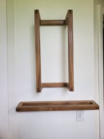 Bring handcrafted elegance to your space with this solid white oak towel holder, featuring rich walnut joinery for a striking contrast. The upper open-frame rack provides a stylish spot to hang hand towels, bath towels, or other linens, holder keeps towels neatly organized and within easy reach. Sealed with a clear polyurethane finish, this piece highlights the natural beauty of the wood while offering durable protection against moisture and daily use.